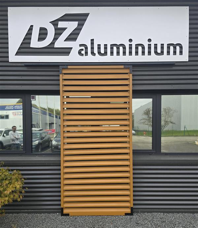 Il ne s’agit pas ici à proprement parler d’un projet pour un tiers, mais d’une démonstration en vraie grandeur des compétences d’Alugarde (une marque de DZ Aluminium) dans le domaine des BSO. L’objectif est de mettre en évidence l’aspect qualitatif des parements de façade ainsi réalisés, et d’aider le client à se projeter dans la multiplicité des cas d’usage possibles : le BSO trouvera son emploi bien sûr dans des bâtiments à usage industriel, d’activité ou de bureaux, mais on peut aussi l’imaginer pour des locaux d’habitation collectifs, voire pour de l’habitat individuel. Au-delà de sa fonction première de diminuer l’impact lumineux et thermique des rayons de soleil, il permet plus largement de mettre en valeur une partie de la façade (en bandeau horizontal, en damier, de manière plus aléatoire) au droit d’ouvertures ou non, d’homogénéiser une façade disparate, voire d’animer un mur aveugle. La facilité de mise en couleur de l’aluminium thermolaqué et sa durabilité dans le temps, y compris sous l’emprise des rayons solaires, autorise une très grande diversité d’emplois. Avec Le Corbusier, le brise-soleil (à l’époque en béton) a depuis longtemps acquis ses lettres de noblesse, et sa réputation n’est plus à faire, de la cité radieuse de Marseille, Rezé, Briey, Firminy ou Berlin aux établissements Claude et Duval à Saint-Dié.